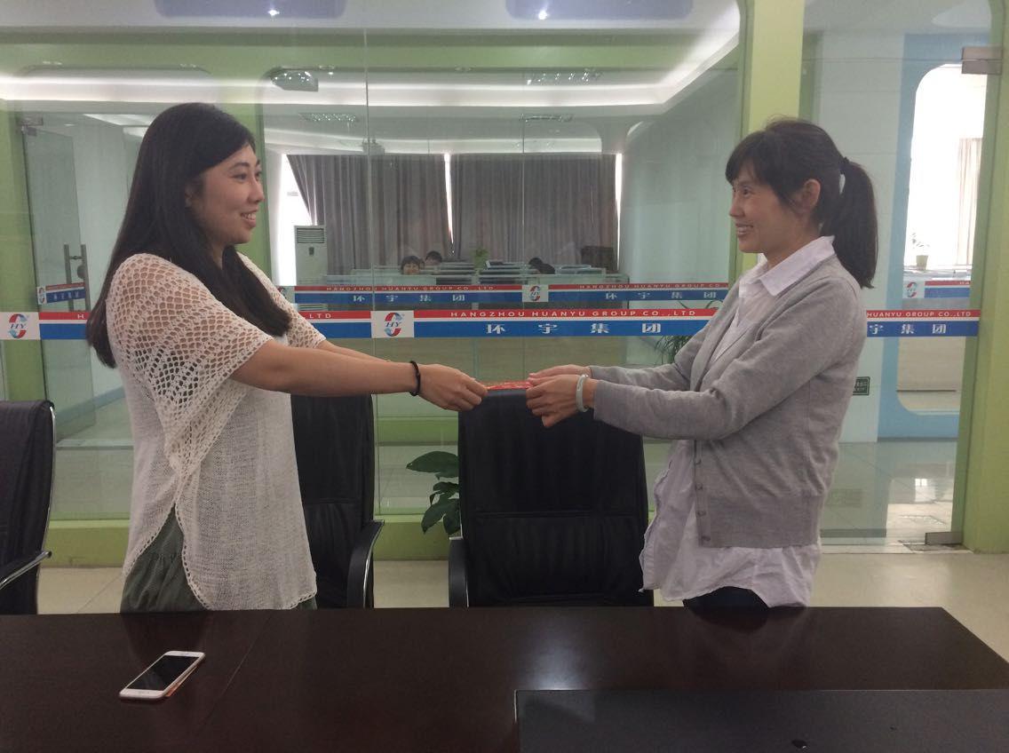 第二輪獲獎的業(yè)務(wù)員是張利梅和余文俊,他們用自己多年外貿接單的經(jīng)驗及刻苦努力的敬業(yè)態(tài)度,贏(yíng)得了客戶(hù)的信任,為企業(yè)爭取了定單。徐總為他們頒發(fā)了獎金,肯定了他們的工作成績(jì),并激勵所有同事,積極努力。張利梅和余文俊介紹了接單心得并表示會(huì )再接再厲,為企業(yè)爭取更多的客戶(hù)及定單。