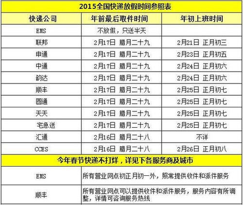 韻達速遞官網(wǎng)稱(chēng),該公司將繼續響應國家郵政局2011年提出的“全年無(wú)休”號召,春節期間全網(wǎng)絡(luò )為客戶(hù)提供收寄快件服務(wù)。不過(guò)根據安排,2月18日前其全網(wǎng)絡(luò )快遞服務(wù)時(shí)效保持正常;2月19日—24日期間,快遞服務(wù)時(shí)效將有所調整,快件運行時(shí)效有所放緩;2月25日后恢復正常。盡管說(shuō)法明確,但實(shí)際上情況有變動(dòng)。南京白云區一家韻達快遞站點(diǎn)負責人透露,目前已經(jīng)停收省外件,兩天后省內件都有可能停收取。